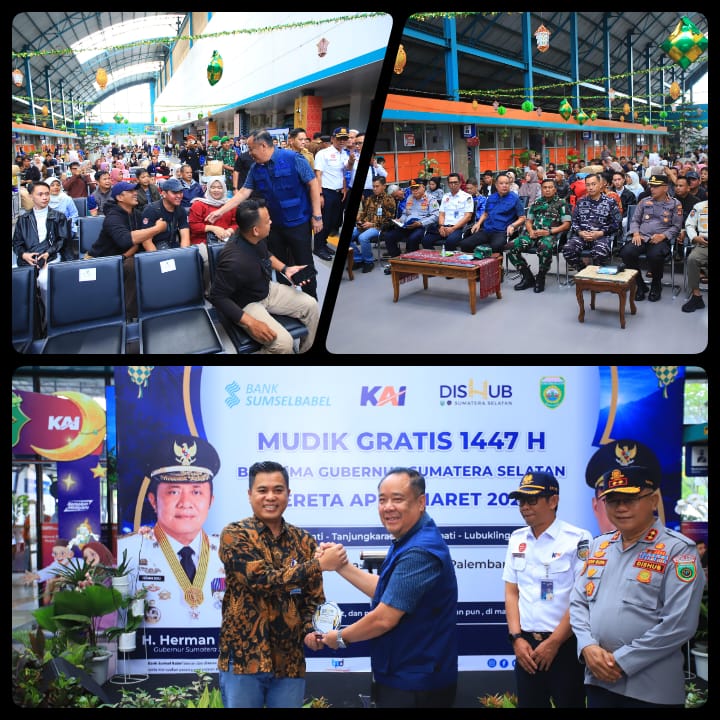 . Program ini merupakan kolaborasi Pemerintah Provinsi Sumatera Selatan bersama Dinas Perhubungan Sumsel, Bank Sumsel Babel, dan PT Kereta Api Indonesia.Pada kesempatan tersebut, Cik Ujang menyampaikan pesan kepada para pemudik agar selalu mengutamakan keselamatan serta menjaga ketertiban selama perjalanan menuju kampung halaman.