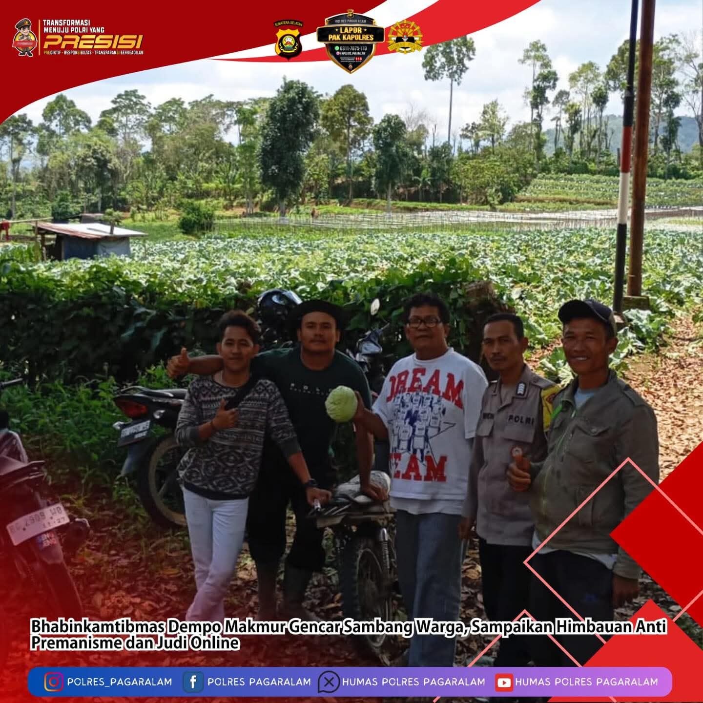 Pagar Alam – Pada Minggu, 5 April 2026 sekitar pukul 13.00 WIB, personel Bhabinkamtibmas Polres Pagar Alam melaksanakan kegiatan himbauan kamtibmas kepada masyarakat guna menciptakan situasi keamanan dan ketertiban yang kondusif di wilayah hukum Polres Pagar Alam.Kegiatan tersebut dilaksanakan melalui sambang langsung ke warga binaan, salah satunya oleh Bhabinkamtibmas Kelurahan Dempo Makmur yang aktif menyapa dan berdialog dengan masyarakat. Dalam kesempatan itu, petugas memberikan himbauan kamtibmas sekaligus mengajak warga untuk bersama-sama menjaga keamanan lingkungan.Dalam himbauannya, masyarakat diingatkan untuk waspada terhadap potensi gangguan kamtibmas seperti aksi premanisme serta diminta menjauhi segala bentuk perjudian, khususnya judi online yang saat ini semakin marak dan berdampak negatif bagi kehidupan sosial.Selain itu, warga juga diajak untuk kembali menghidupkan sistem keamanan lingkungan (siskamling) sebagai langkah preventif dalam menjaga keamanan. Petugas juga mengingatkan agar masyarakat selalu mengunci rumah saat bepergian guna mencegah tindak kejahatan.Apabila masyarakat menemui kendala atau membutuhkan bantuan, diimbau untuk segera menghubungi call center Polri di nomor 110. Respon masyarakat terhadap kegiatan ini cukup positif, di mana warga merasa terbantu dan lebih sadar akan pentingnya menjaga keamanan lingkungan secara bersama-sama. Selama kegiatan berlangsung, situasi terpantau aman dan kondusif.Kapolres Pagar Alam AKBP Januar Kencana Setia Persada. SIK menyampaikan bahwa kegiatan ini merupakan bentuk nyata kehadiran Polri di tengah masyarakat dalam menjaga situasi kamtibmas tetap aman dan kondusif.Sementara itu, Kasi Humas Iptu Mansyur, SH menambahkan bahwa sinergi antara Polri dan masyarakat menjadi kunci utama dalam menciptakan lingkungan yang aman, nyaman, serta bebas dari berbagai potensi gangguan kamtibmas. (Din)