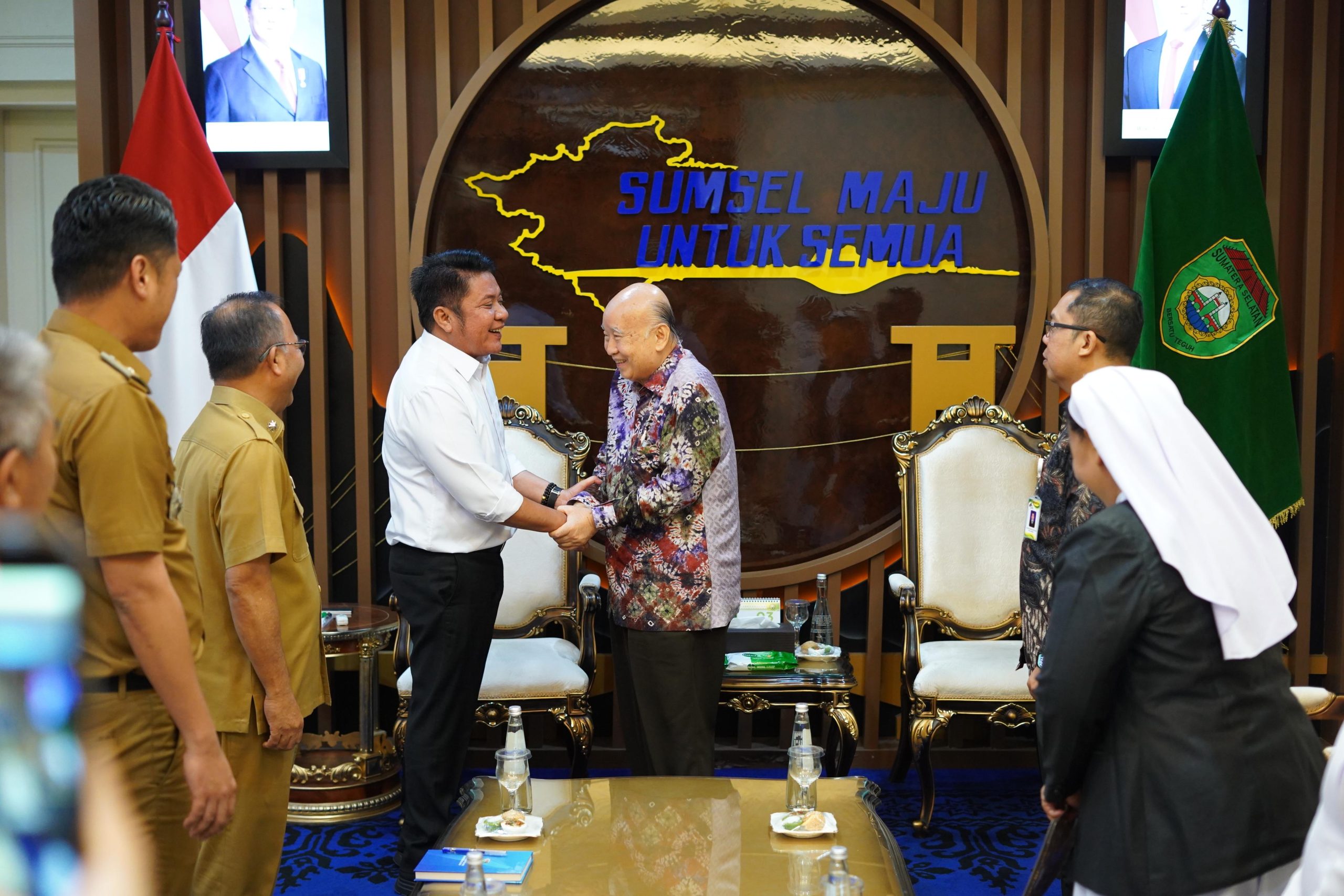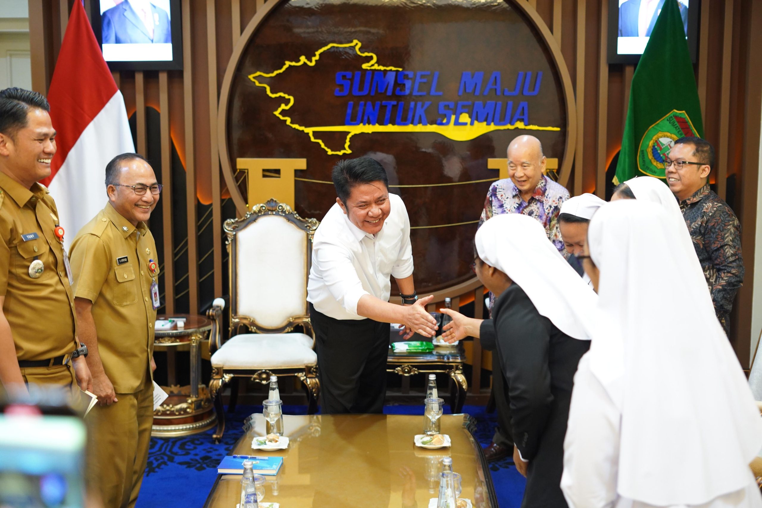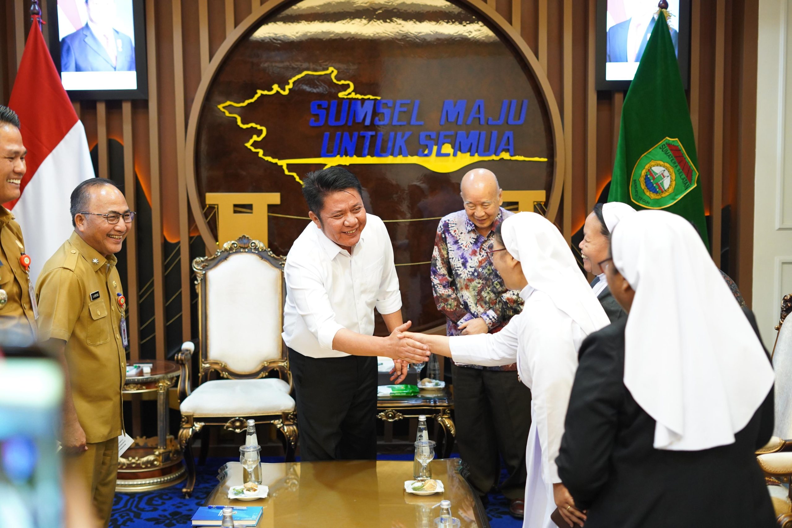 PALEMBANG – Gubernur Sumatera Selatan, Dr. H Herman Deru, menerima audiensi panitia Pesta 100 Tahun Kongregasi Suster Santo Fransiskus Charitas di Ruang Tamu Gubernur, Selasa (7/4/2026).Audiensi tersebut dihadiri Penasehat Charitas Group Prof. dr. Hardi Darmawan, MPH, TM, FRSTM, AEIM, Pemimpin Umum Kongregasi FCH Suster Patricia, serta Direktur Charitas Hospital Palembang dr. Antonius Yudianto, MARS, MH, FISQUA, beserta jajaran.