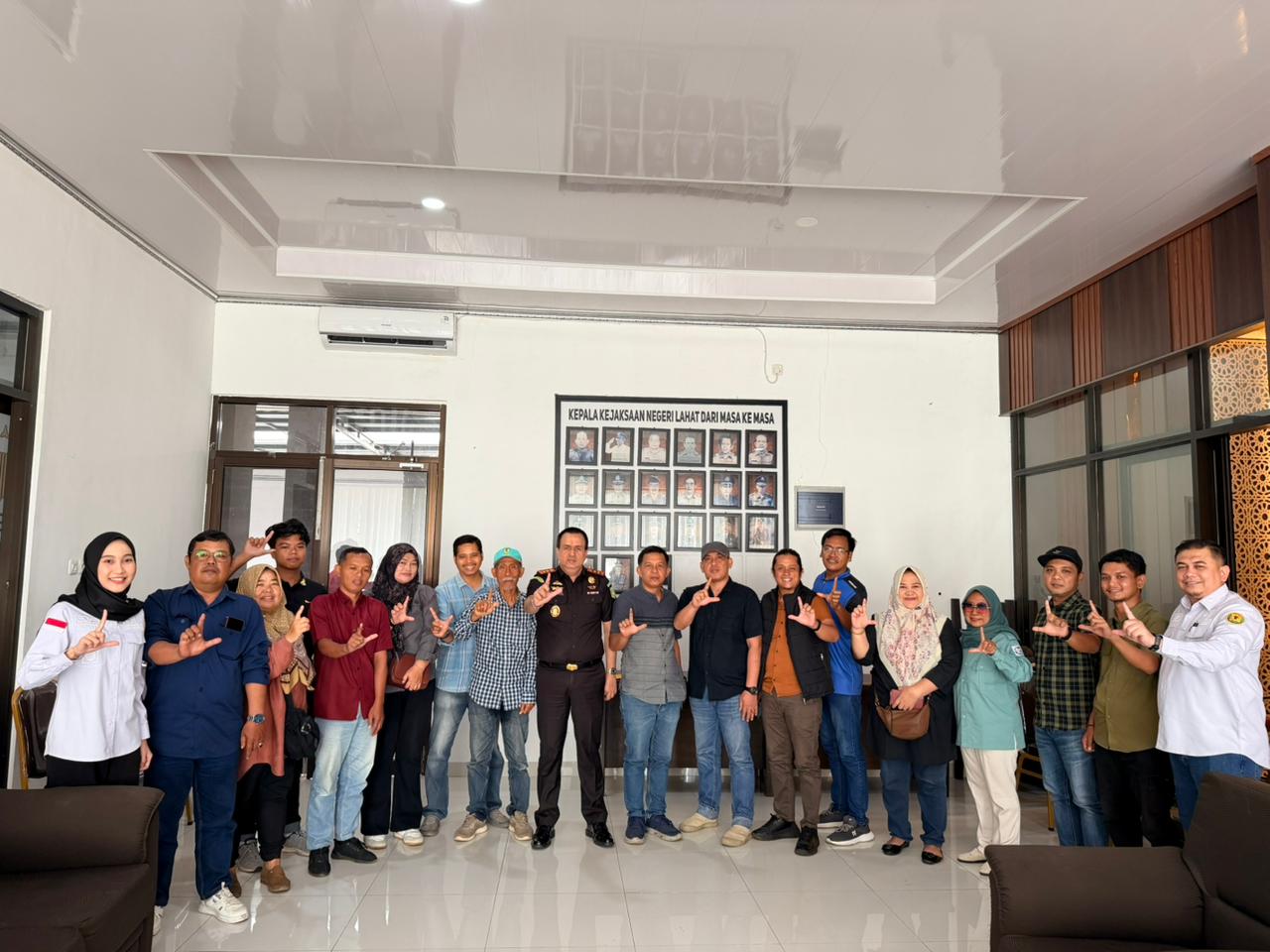 LAHAT,SL– Pengurus Persatuan Wartawan Indonesia (PWI) Kabupaten Lahat menggelar kunjungan audiensi sekaligus silahturahmi ke Kantor Kejaksaan Negeri (Kejari) Lahat, Rabu (15/04/26).Pertemuan ini bertujuan untuk memperkuat hubungan kemitraan serta membangun kolaborasi yang lebih solid antara insan pers dan institusi penegak hukum di Bumi Seganti Setungguan.Kedatangan rombongan PWI Lahat yang diketuai oleh Ehdi Amin disambut langsung oleh Kepala Kejaksaan Negeri (Kajari) Lahat, Teuku Luftansya AP, S.H., M.H didampingi Rio Purnama, S.H., M.H beserta jajaran dalam suasana yang hangat dan penuh keakraban.Dalam pertemuan tersebut, kedua belah pihak sepakat bahwa peran media dan instansi kejaksaan merupakan elemen penting yang saling mendukung, terutama dalam hal penyebaran informasi terkait penegakan hukum dan edukasi kepada masyarakat.